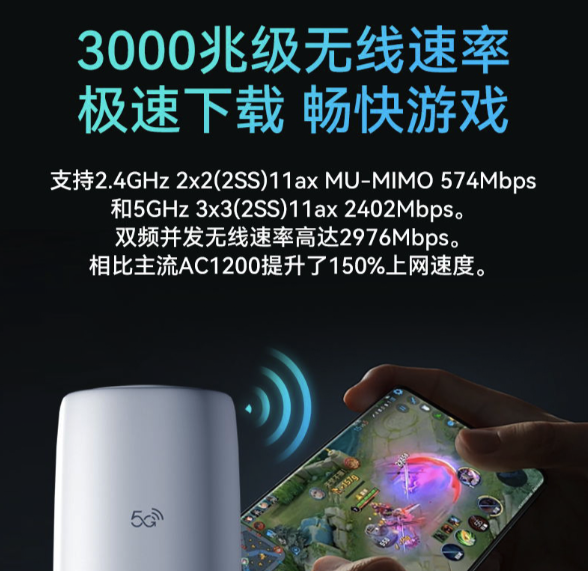 支持全新一代Wi-Fi 6技術標準,Wi-Fi接入速率最高 可達3000Mbps,為您帶來疾速流暢的無線網絡體驗。